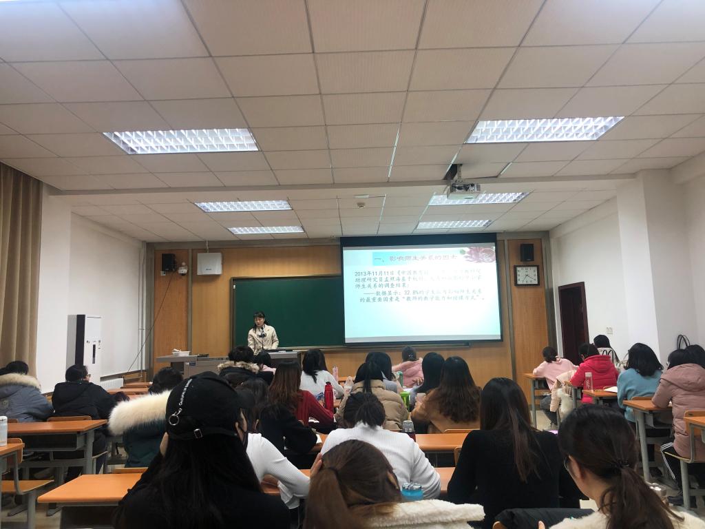 讲座开始,赵老师通过与同学们交流在实习当中遇到的教育员工的案例,引导大家思考在教学中如何建立良好的师生关系。赵老师通过解析“四有好老师”徽标中的国旗、尺子、书本、爱心元素,指出“四有好老师”是有理想信念、有道德情操、有扎实知识、有仁爱之心的老师。接下来,赵老师从五个方面具体讲解了如何构建良性师生关系,一是要倾注师爱尊重员工,二是要改革观念创新智慧,三是要树立威信有学识,四是要多进行师生互动交流,五是要创造温暖氛围。赵老师还向同学们分享了从教十几年总结出的处理员工问题的诀窍,一是要做到“四从四不”,二是要学会忍让和退却,三是要懂得接纳,善于倾听。最后,赵老师围绕打造“第二课堂”和创设班级氛围进行了讲解,“第二课堂”可借鉴的做法有开展阳光阅读课、寻秋课堂、情境朗诵、排演话剧等,创设班级氛围可从班级文化建设和班本活动课程两方面去努力。