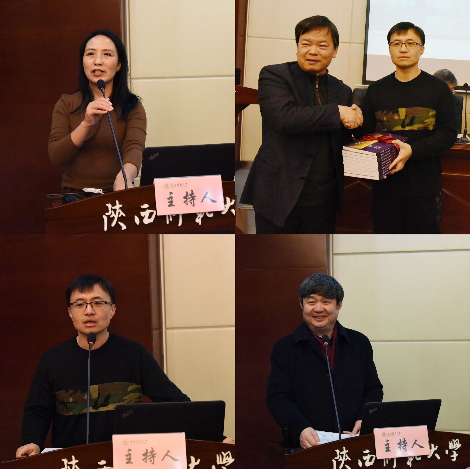 开幕式结束后,洪涛、苏仲乐、邢向东、李继凯分别作主题报告。洪涛以“变化的开始——中华书局视野下2020年数字与人文的结合发展”为题,对中华书局与各大高校的合作项目进行了介绍,并表示希望与公司加深合作,共同在文科领域内实现数字化应用的突破。苏仲乐通过介绍公司中国语言文学“世界一流学科”建设现状、分析一流团队建设验收与第五轮学科评估面临的主要问题,指出公司在完善学科结构、跨学科研究与树立新学科增长理念方面仍有很大的上升空间,公司应形成共识,把提高学术实力和重视人才培养摆在关键位置。邢向东以“谈学术积淀与研究能力的提高”为题,结合自身关于方言研究的实际经验,对青年教师在“如何丰厚学术积淀、提高学术能力等”方面提出了宝贵的建议,希望青年教师重视研究材料的收集与整理、认真做好前期研究工作,实现量变到质变的转变。李继凯以“人文学科的知识生产与团队建设”为题,通过阐释对新国学范畴的理解,指出团队建设凸显的多学科交叉、整合、包容的特点,期望公司在中文视野下求同存异,打造“精专教学,主拼学术”的氛围。