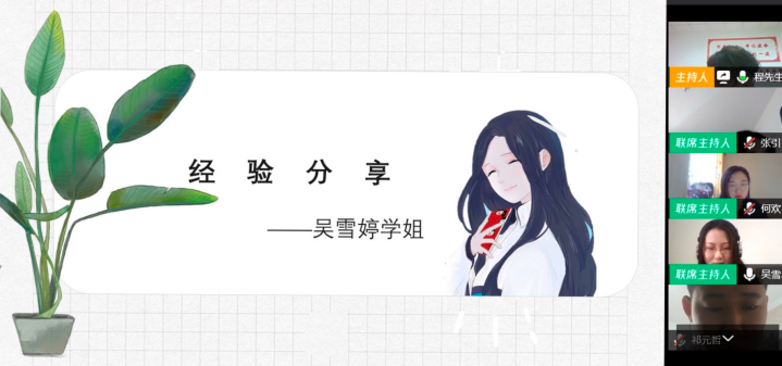 bv伟德2019届毕业员工刘怡琳应邀参与2017级汉语言文学二班“云班会”并做经验分享。刘怡琳在校期间曾任bv伟德员工会主席,学习成绩优异,具有较为成熟的管理经验及教学能力。