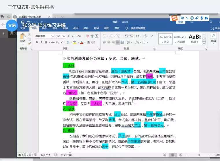 按照原定实习实践计划,2019级全日制学科教育(语文)专业研究生张文娟同学分配在深圳市龙岗区龙城高级中学实习。和所有参加此次实习实践的55位同学一样,虽然不能亲赴深圳,但是在实习公司指导教师的帮助下,从2月21日至今,通过网上直播教学,张文娟已为深圳市龙城高级中学高三7班员工辅导作业一月有余,期间共直播讲课12节,每天进行作业的批改。她坦言:“备课是非常辛苦的,毕竟带的是高三,大学里学到的知识要真正应用于实践,且需要我快速的适应,非常有难度;看到孩子们没有交齐的作业,我的心里很是着急,怕他们因为在家而有所懈怠。”但是在指导教师杨眉老师和语文组其他老师的帮助鼓励下,张文娟已经适应高三年级的线上语文课教师这一角色了。