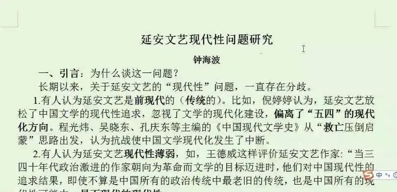 讲座最先解释了什么是现代性这一问题,而后从延安文艺的产生、性质等方面进行更深入的研究。让我们了解到,延安文艺在现代文学史上占有重要地位。钟老师对延安文艺现代性问题的讲解深入浅出,面面俱到,带领我们进行了一次精彩的延安文艺现代性欣赏之旅。