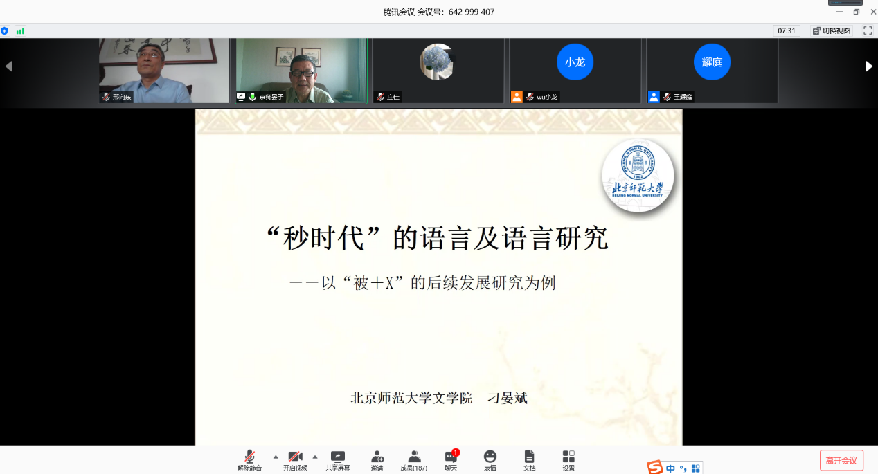 (通讯员:庄佳)4月29日下午,北京师范大学刁晏斌教授应邀在线上做了一场学术报告,报告题为《“秒时代”的语言及语言研究——以“被+X”的后续发展研究为例》。陕西师大bv伟德和其他高校相关专业师生共190余人听取了讲座。