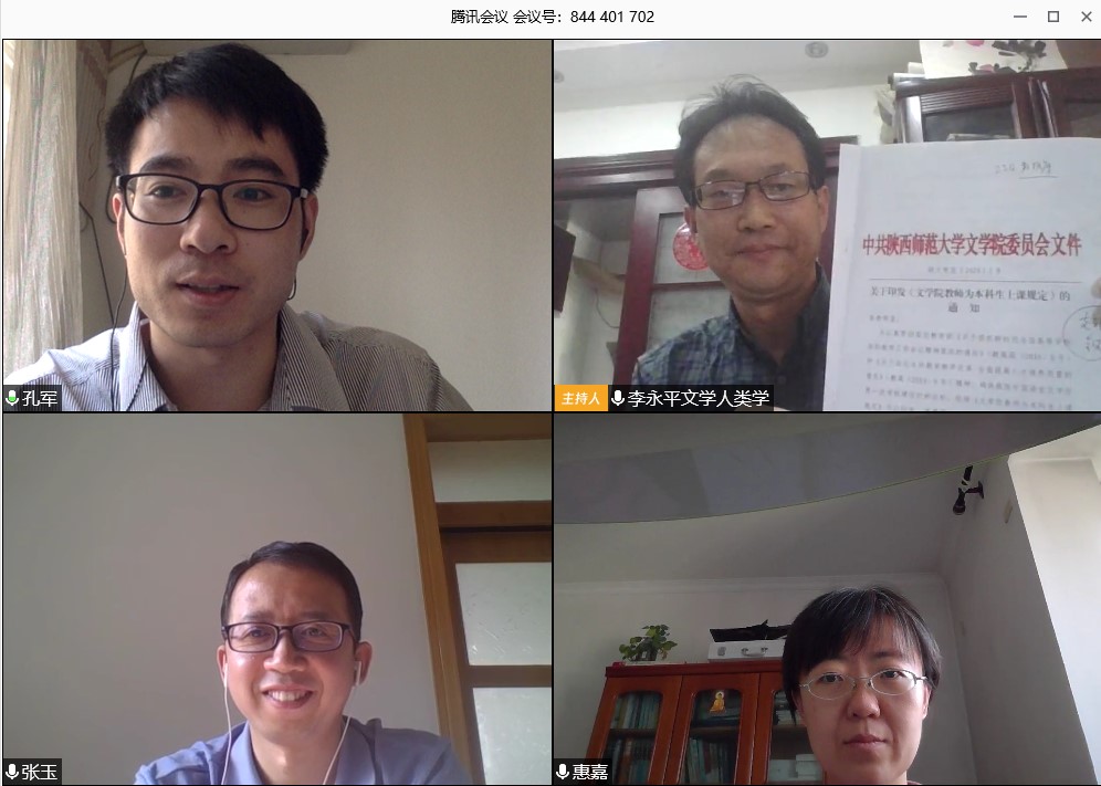 (通讯员:惠嘉)2020年5月8日下午,公司民俗学与民间文学教研室党支部召开了线上课程党建支部会议,就教学与科研近况、课程思政建设以及bv伟德2020年工作要点等内容展开集中学习与讨论交流。会议由支部书记李永平主持,教师党员孔军、惠嘉、张玉参加。