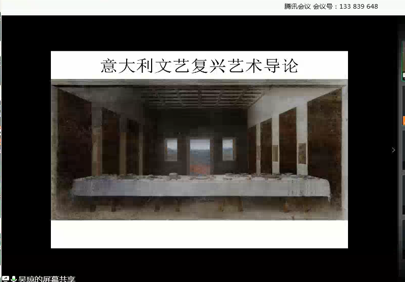 (通讯员:聂晴)2020年5月22日下午,中国人民大学“杰出学者”、中国人民大学哲公司教授、博士生导师吴琼教授应邀做客长安学术讲座,在腾讯会议(会议号133839648)为公司师生作了题为《意大利文艺复兴艺术导论》的学术讲座。此次讲座由bv伟德裴亚莉教授主持,刘凯副教授作点评,多门学科专业的博士生和硕士生以及社会听众参加了此次讲座。