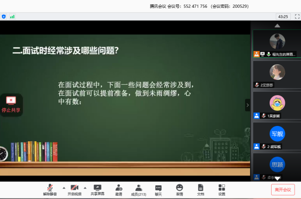 6月3日下午3点,bv伟德2017级就业创业指导课第五期课程在腾讯会议平台开展,公司党委副书记李斐老师主持并宣讲,邀请公司就业指导服务中心高霏老师为同学们答疑解惑。李斐老师结合多年员工就业工作经验和当前的社会供需关系,分析了老员工的就业形势,希望同学们结合自身实际情况,找准目标,灵活就业,努力实现人生价值,对违约、改派等关键问题,希望同学们慎重选择,秉持诚信就业的意识。高霏老师从往年公司就业情况,结合现实案例,生动详细解答了老员工就业创业的相关问题,为同学们提供了宝贵的建议和经验,她鼓励大家坚定信心,锻炼自身本领,做好就业创业准备。