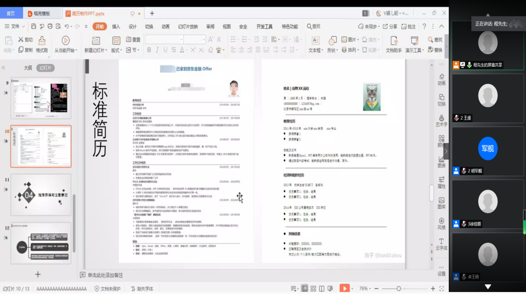 2020年5月6日、5月8日,辅导员程海峰通过视频分享和演示文档讲解等形式,对公费师范生和非师范生当前的就业形势做了基本介绍,为公费师范生解读就业政策,对非师范生详细讲解人事代理、灵活就业、老员工参军、 老员工到基层就业等就业类型。5月13日、5月15日程海峰分别对公费师范生和非师范生开展就业择业规划和答疑,重点围绕非师范生自主创业的优惠政策和公费师范生教育实习进行宣讲,并集中解答了就业过程中的常见问题。5月20日、5月22日,第三期就业指导课顺利开展,本周主要开展了诚信就业,就业市场与信息渠道的归纳分享和求职简历的制作方法。5月27日、5月29日,第四期就业指导课,程海峰为同学们讲解了面试的相关问题、公司的就业流程、毕业生离校以及报到的相关手续,着重强调了就业协议书的填写规范。
