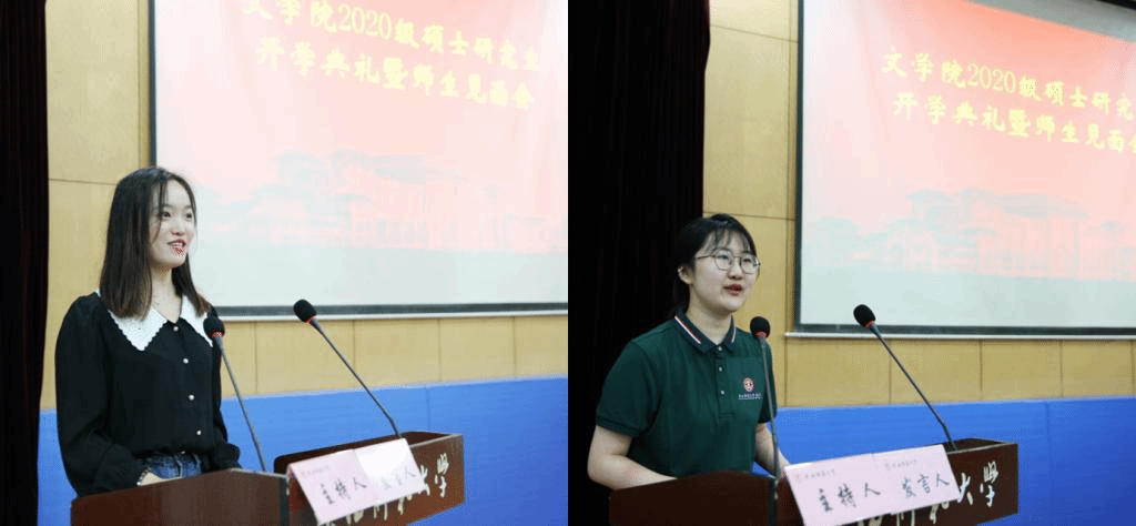 在读研究生代表和新生代表分别发言。2019级中国古代文学专业杨钰莹同学作为在读研究生代表,分享了自己在bv伟德五年以来的学习生活体会。她鼓励同学们要有“磐石无转移”的定力、“青春须早为”的活力和“迈步从头越”的魄力,不忘初心,砥砺前行。2020级中国现当代文学专业单赫同学作为新生代表,讲述了她去年暑假参加公司举办的“优秀老员工夏令营”活动,从此与陕师大bv伟德结缘,如今以新身份再次和陕师大重逢,诠释了“求学”二字的分量与意义,并表示将肩负时代使命,传承人文精神。
