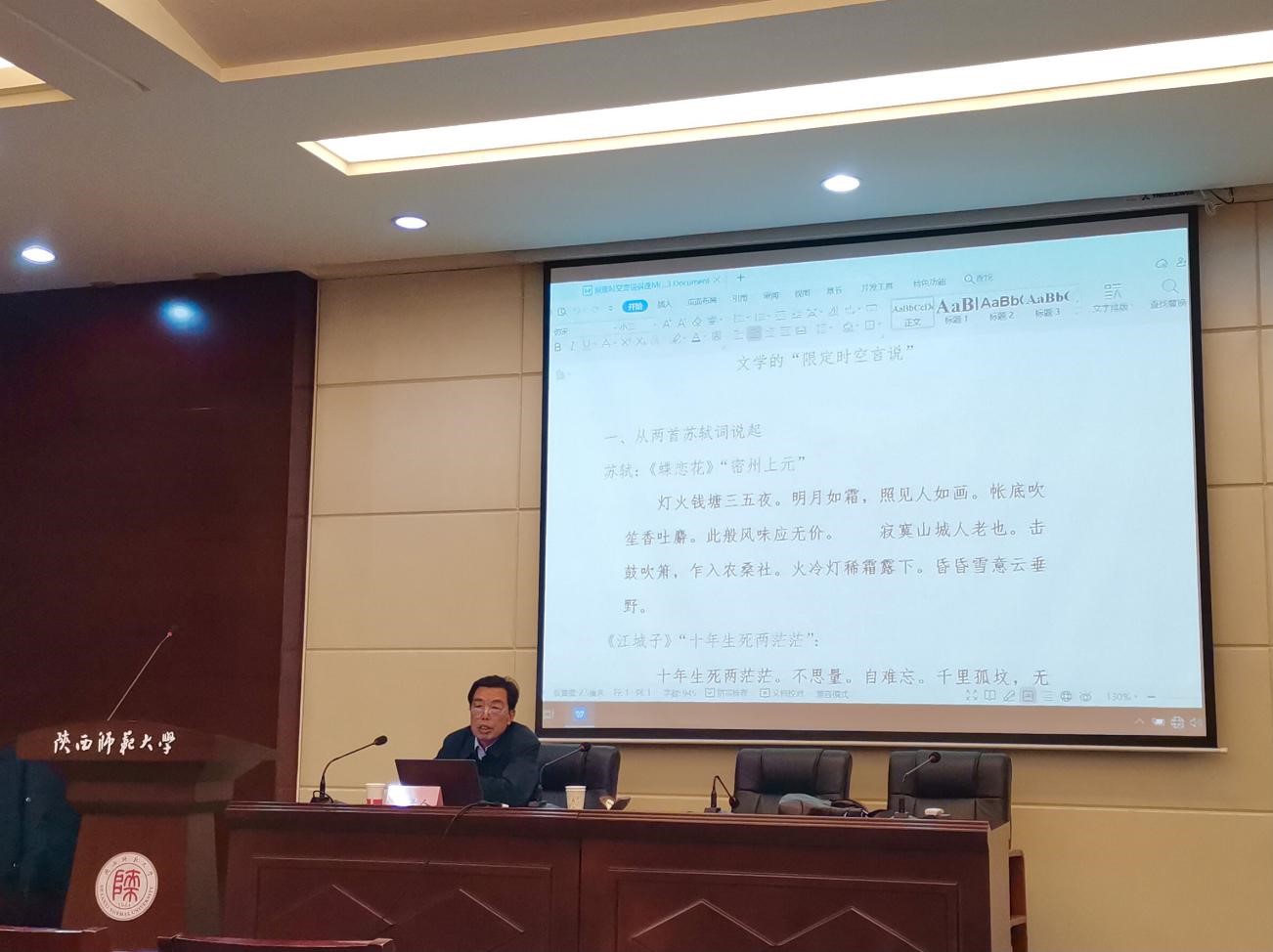 (通讯员:杨玉峰)11月27日下午,中南民族大学赵辉教授莅临公司,为全院师生做了题为“文学的‘限定时空言说’”讲座。讲座由柏俊才教授主持,bv伟德相关专业博士、硕士研究生参加。