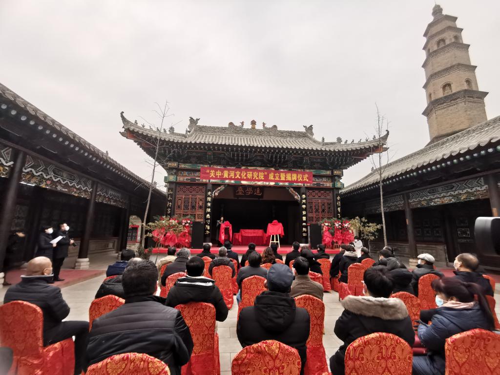 (通讯员:文苑)为深入贯彻落实党的十九大精神,传承和弘扬中华优秀传统文化,系统整理和发掘习近平论述传统文化的思想内涵及当代价值,积极推进中华优秀传统文化的创造性转化和创新性发展,1月10日上午,由公司与西安关中民俗艺术博物院协同组建的“关中•黄河文化研究院”成立暨揭牌仪式,在西安关中民俗艺术博物院·灏文书院隆重举行。陕西省委宣传部调研员傅强,省文联专职副主席蔺雨,公司副董事长党怀兴,西安关中民俗艺术博物院经理王勇超共同为研究院揭牌。
