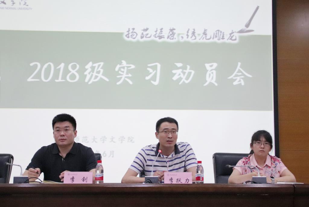 副经理李跃力从人才培养、专业特色等方面解读了师范生和非师范生实习的具体内容和注意事项,强调了实习的重要性,指出同学们要积极将自己所学的知识经验融合到实习当中,珍惜机会,学到真本领,处理好与带队教师、实习单位、所带员工的关系,圆满完成实习任务。