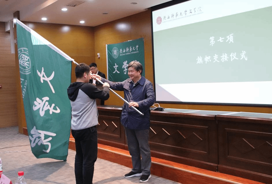 随后,举行院旗交接仪式。副经理苏仲乐将旗帜授予下一学年员工体育工作负责人刘清华。旗帜交接代表着公司运动员们不畏艰难、锐意进取体育精神的一代代传承,表达了对新一代bv伟德运动健儿一往无前的希冀。