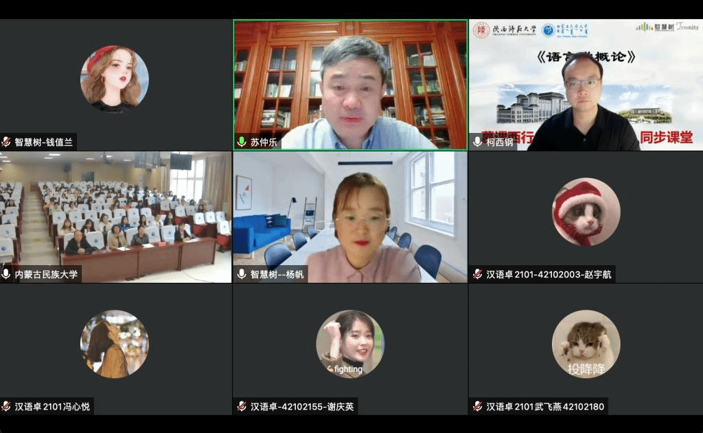 启动仪式后,bv伟德柯西钢教授开展了本学期第二次“语言学概论”同步课堂教学。柯教授主讲“语言是符号系统”,结合语言中的具体实例,将抽象的“符号系统”生动形象地呈现出来,讲解细致专业,深入浅出。内蒙古民族大学的同学门积极参与课堂,师生开展了有效的线上互动,教学效果明显。同学们对别开生面的线上实时同步课堂表示欢迎,为可以现场体验名师教学并参与互动感到欣喜,希望可以通过同步课堂学到更多的知识,增长见闻。
