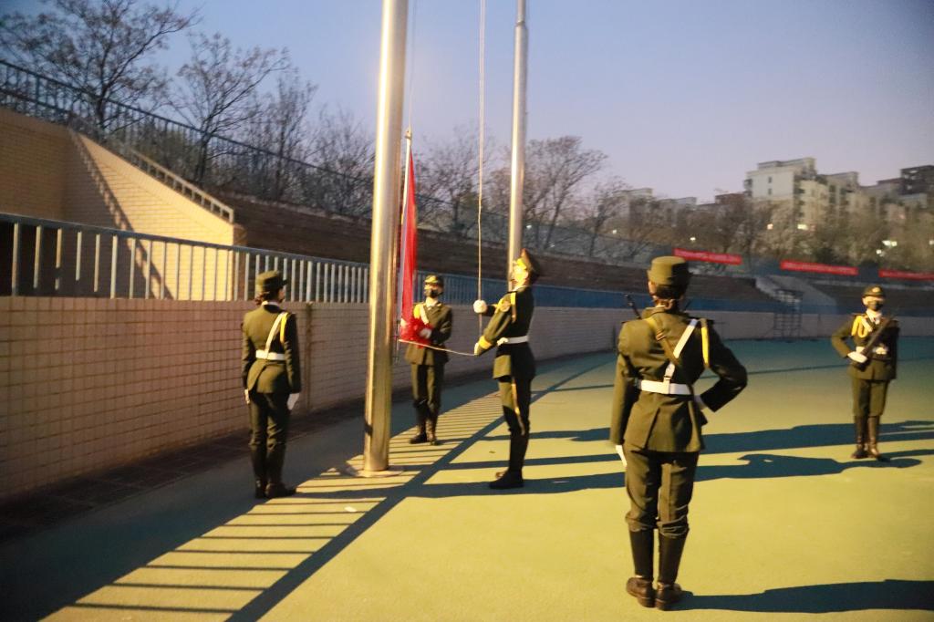 晨曦微露,国旗护卫队护卫国旗昂首阔步走向升旗台,五星红旗伴随着朝阳冉冉升起,全体师生庄严肃立,伴随音乐颂唱国歌。2021级本科生董斯文以“传承雷锋精神,争做文明老员工”为题作国旗下演讲;李佳玲、张杉杉、丁怡然、陈乐盈等员工代表进行了集体朗诵,鼓舞所有同学提升修养,勇攀高峰,磨砺意志,用青春向时代作答。