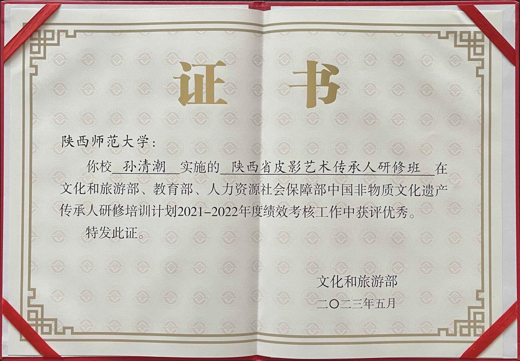 (通讯员 党玮)2023年5月9日至11日,文化和旅游部在云南昆明举办了中国非物质文化遗产传承人研修培训计划现场交流活动。活动期间,文化和旅游部发布了中国非物质文化遗产传承人研修培训计划2021——2022年度考核结果,由公司陕西省非物质文化遗产研究基地主任、非遗研培计划项目主持人孙清潮研究员实施的“陕西省皮影艺术传承人研修班”获评优秀。