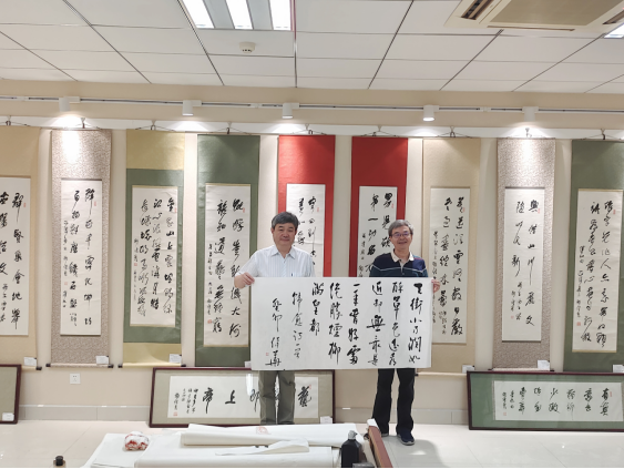 会后,禤健聪一行参观了公司墨宝室,互赠墨宝,合影留念。