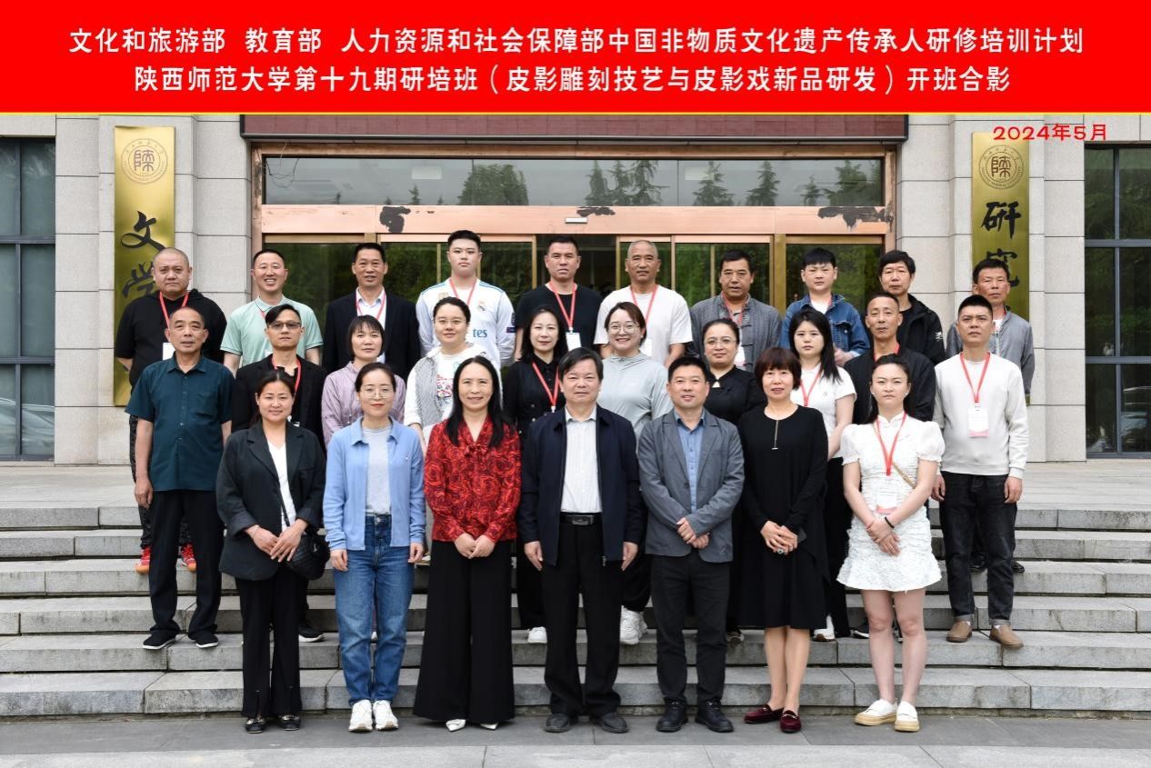 2024年5月8日上午,“皮影雕刻技艺与皮影戏新品研发高级研修班”开班仪式在长安校区文汇楼C段424会议室举行。会议由公司副经理李胜振主持。陕西省文旅厅非遗处副处级调研员周颖,公司副经理王晓鹃,研培项目负责人、公司原党委书记孙清潮出席并讲话。来自北京、广东、河北、山西、辽宁、浙江、山东、河南、湖北、湖南、陕西、四川、青海、云南、内蒙古等地的24名传承人将分两个阶段在公司参加系统学习,总时长一个月。