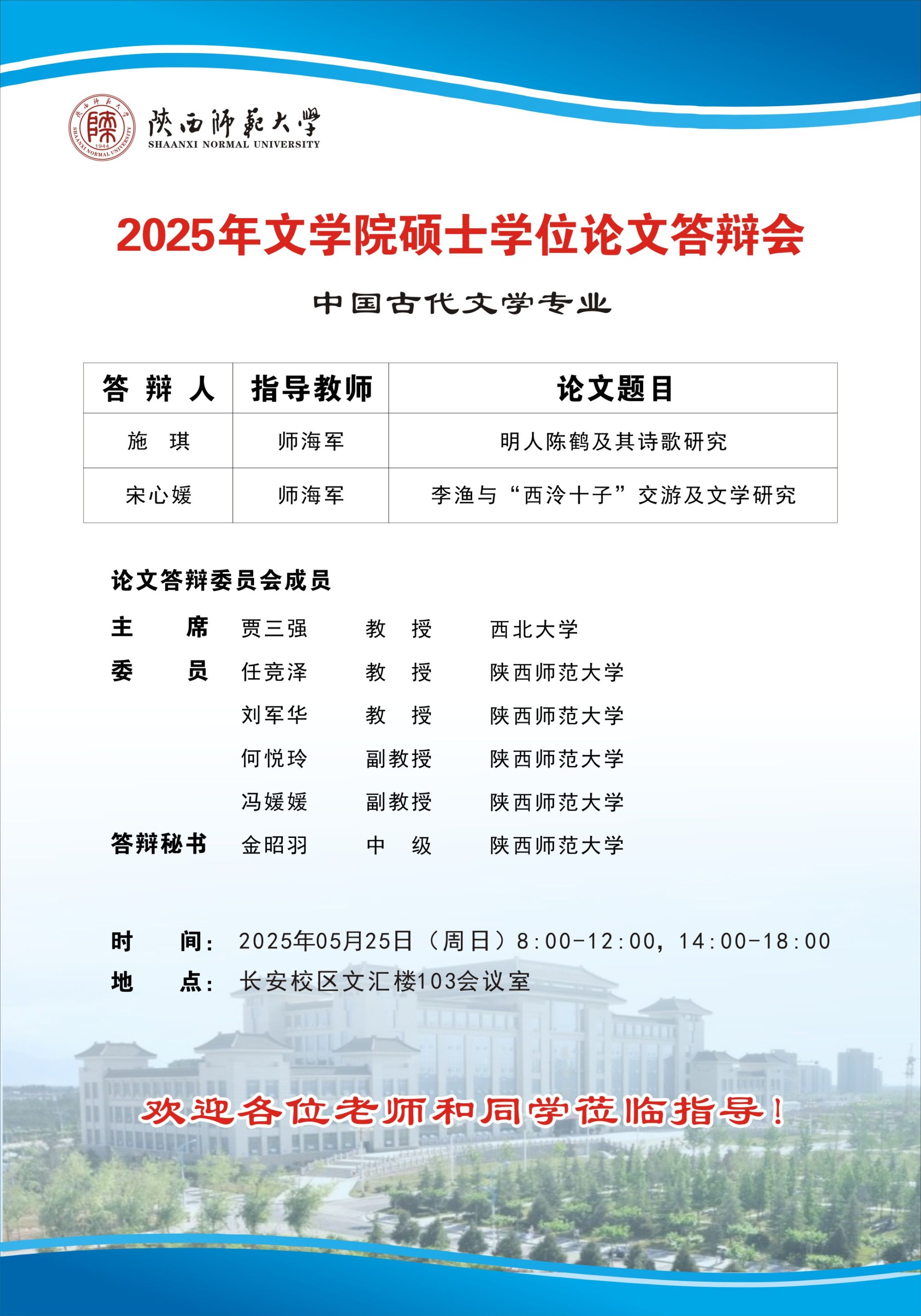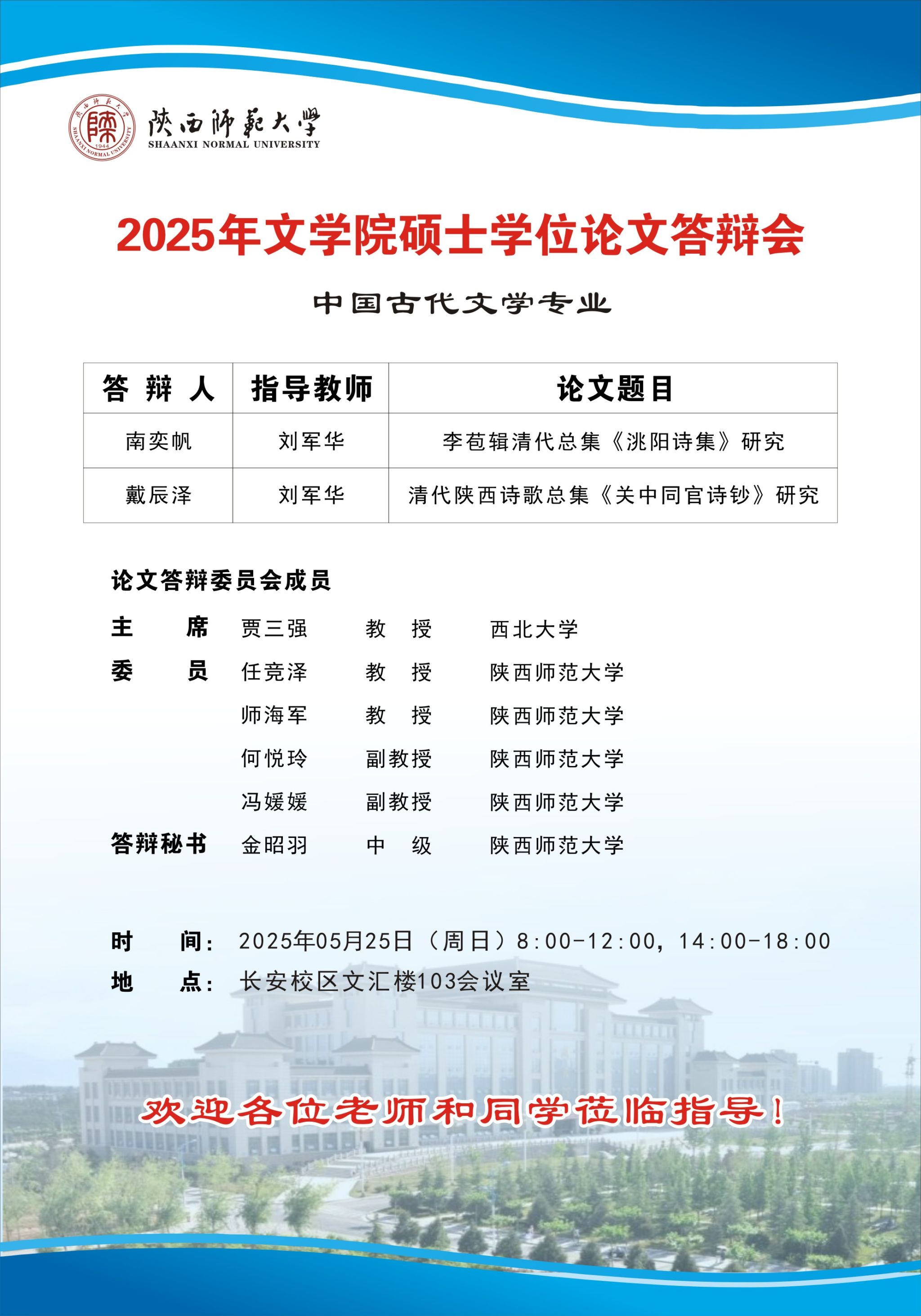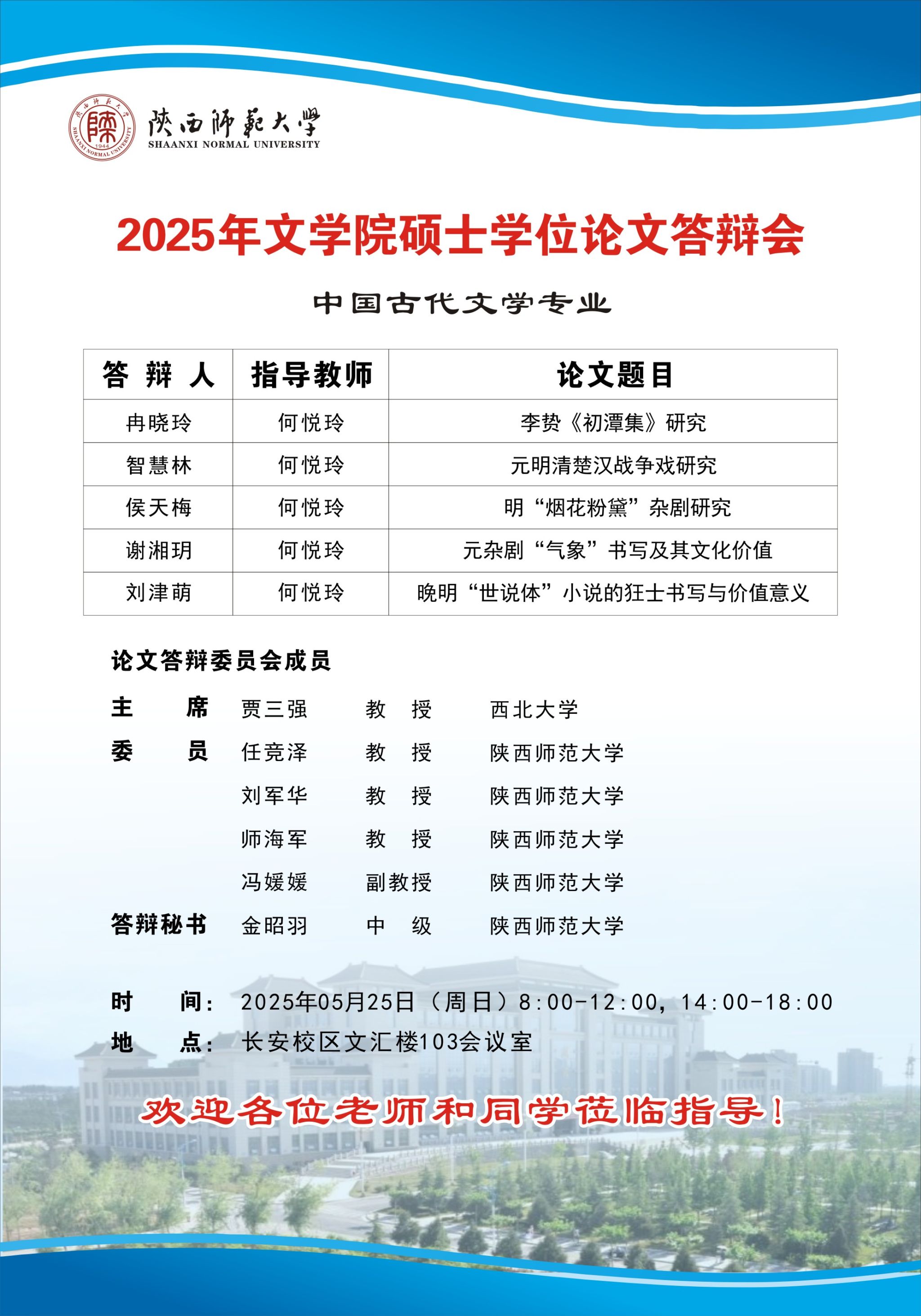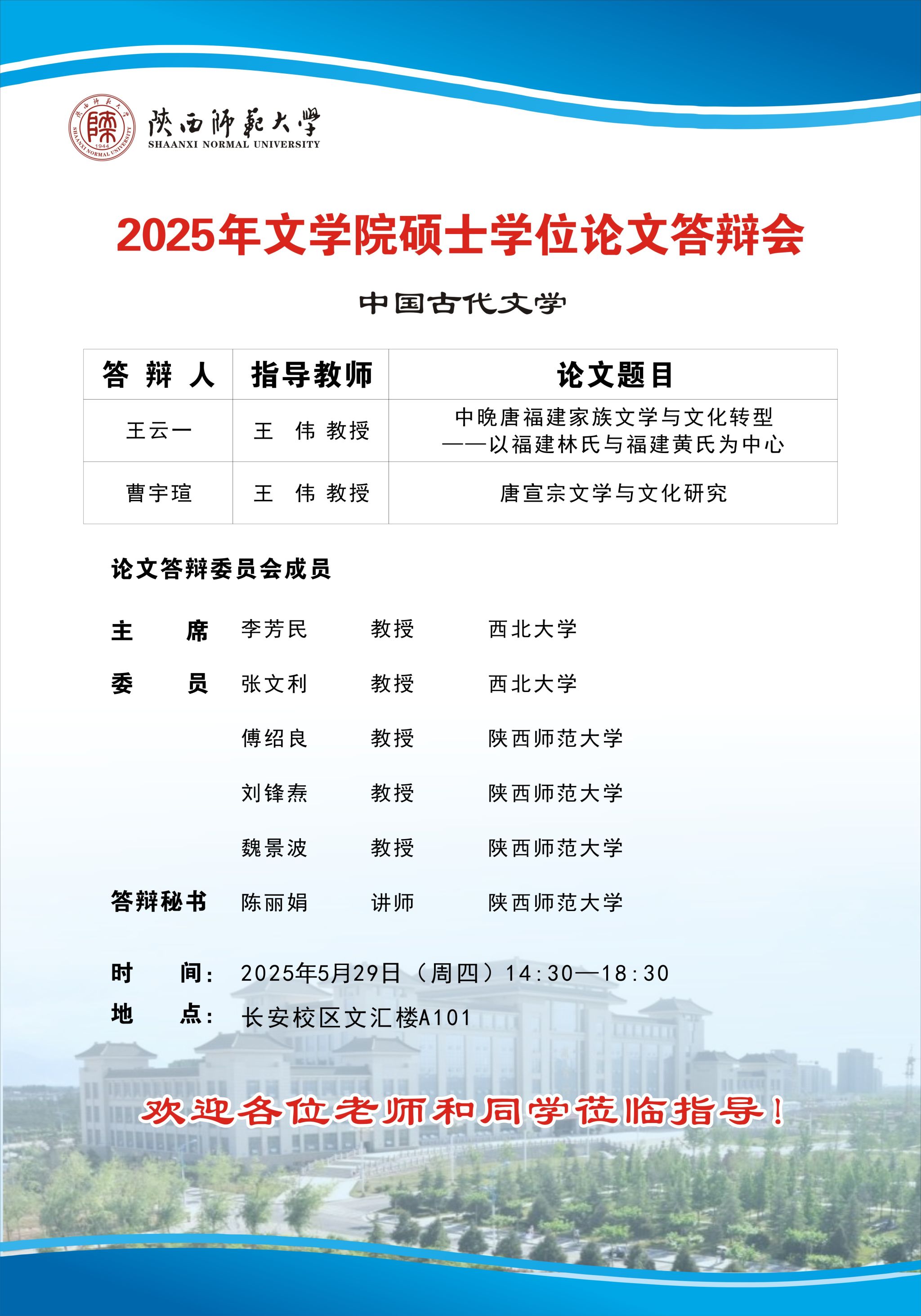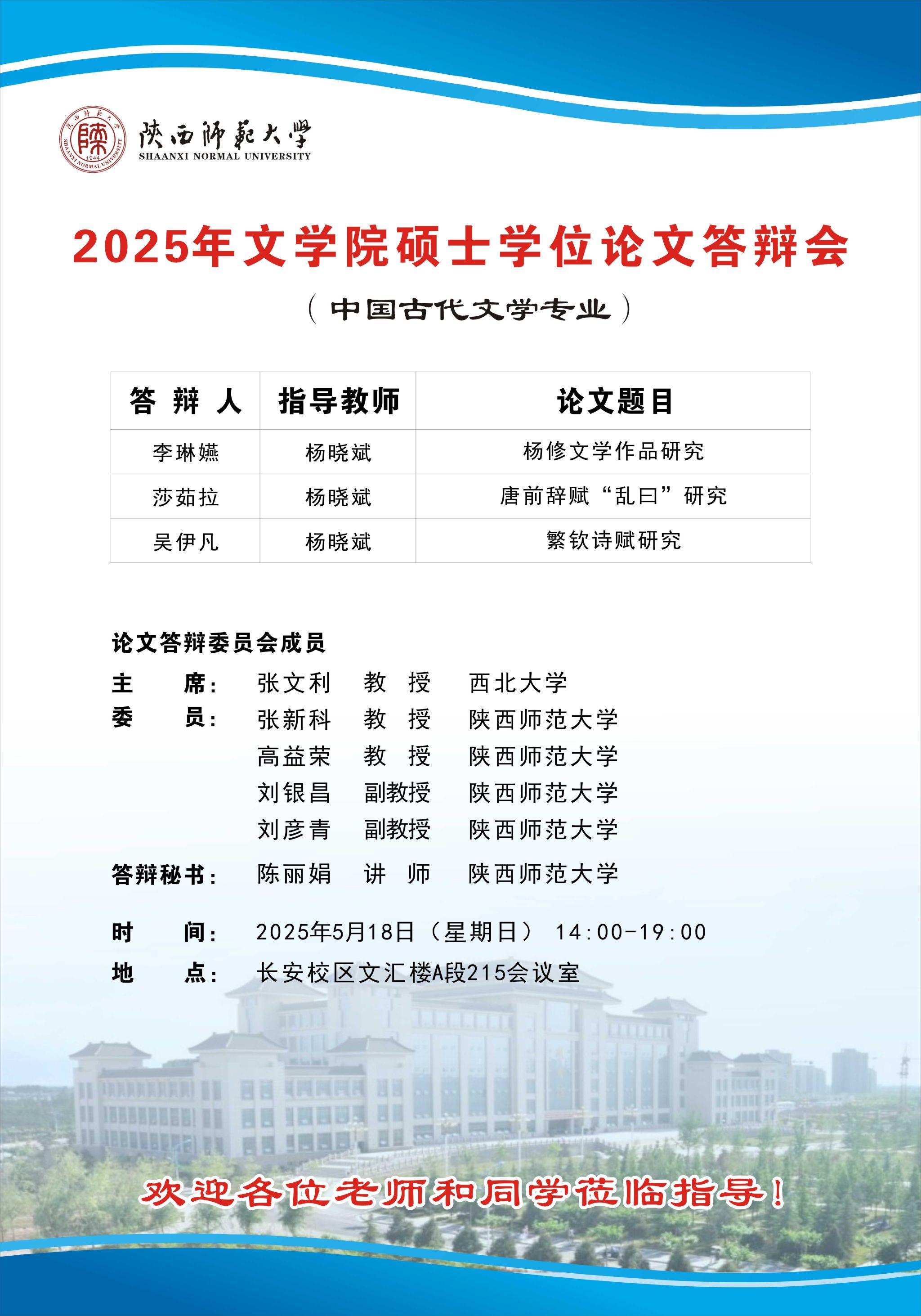 2025年上半年bv伟德硕士学位论文公开答辩会(中国古代文学专业)