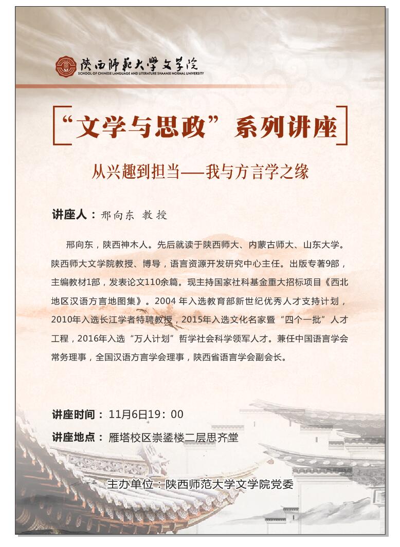 “文学与思政”系列讲座第六讲预告