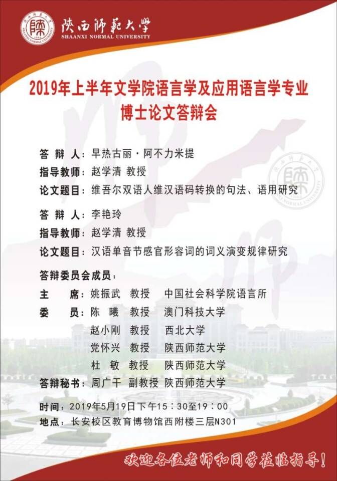 2019年上半年bv伟德语言学及应用语言学专业博士论文答辩会