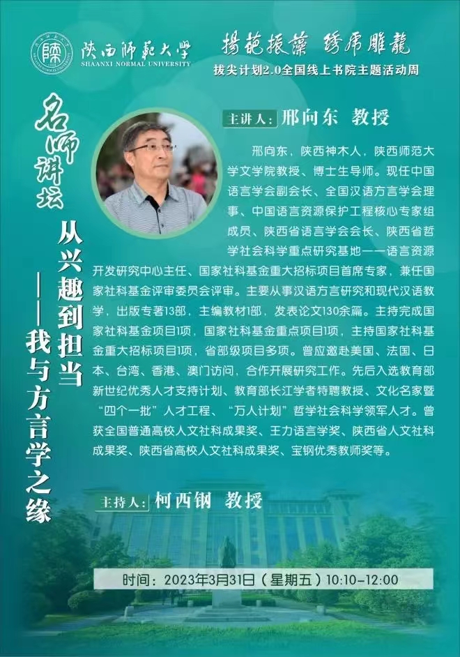 名师讲坛:从兴趣到担当——我与方言学之缘
