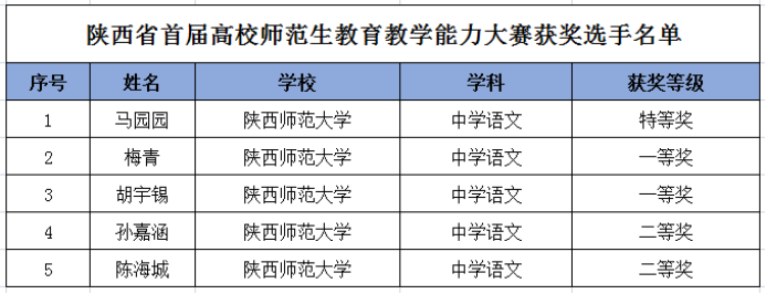 (通讯员:文苑)2022年5月27至29日,陕西省首届高校师范生公司产品能力大赛决赛顺利举办。根据决赛成绩,中学语文组共评选特等奖1名、一等奖5名、二等奖10名,优秀奖4名。其中公司师范生马园园斩获特等奖,梅青、胡宇锡获一等奖,孙嘉涵、陈海城获二等奖。