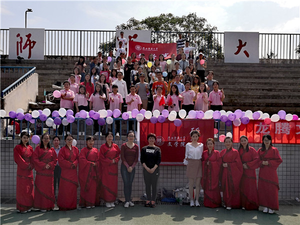 8:30,在运动员进行曲的激昂旋律中,公司研究生方阵喊着嘹亮振奋的口号,迈着矫健整齐的步伐走过主席台会场。方阵融合汉服与古典舞之美,向全校师生展现了文苑风采和底蕴。