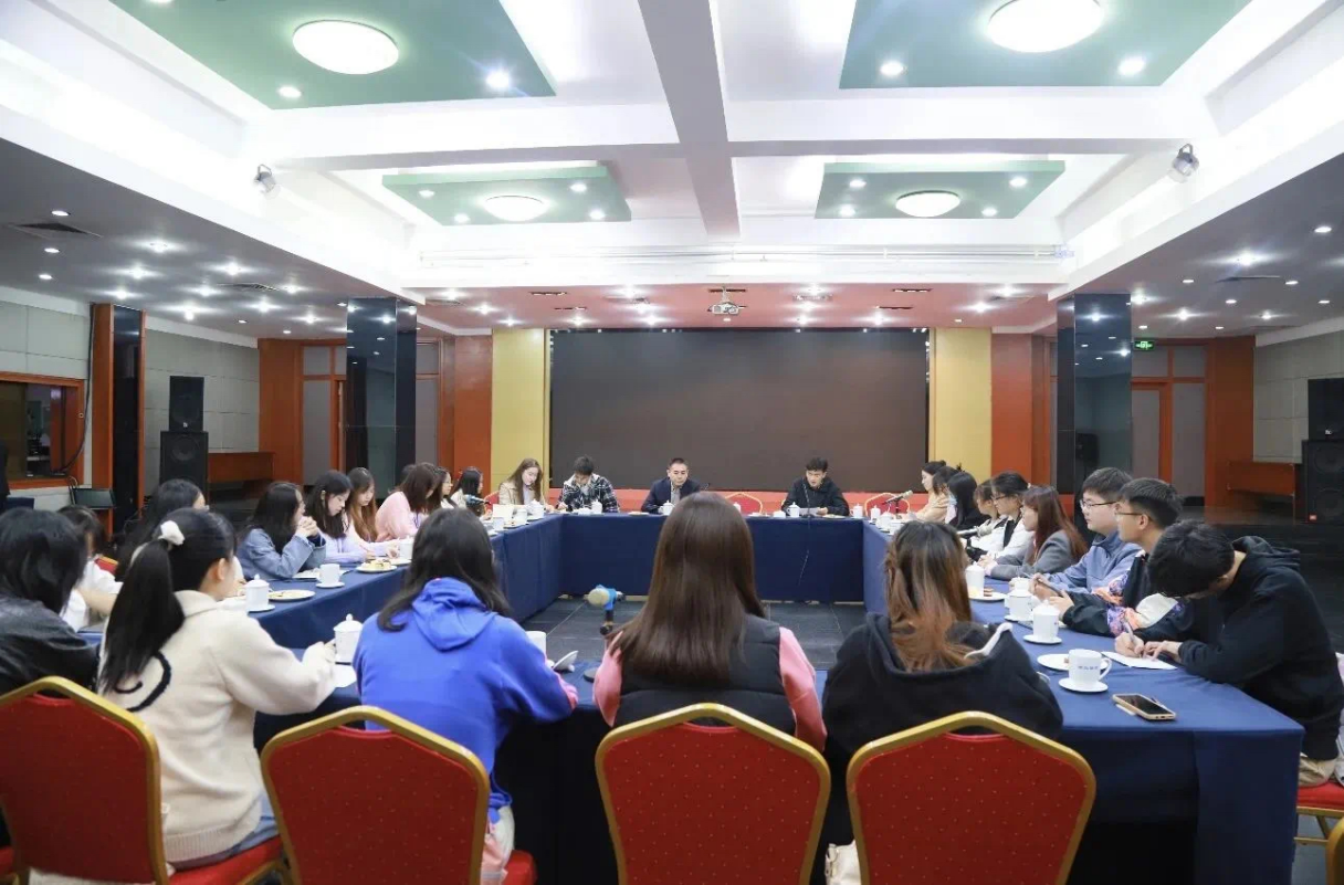 10月25日,bv伟德邀请优秀员工与在校生开展交流活动,本次活动在西北饭店举行,原中文系1998届员工、西北饭店董事长郭延勇先生与同学们亲切会谈。