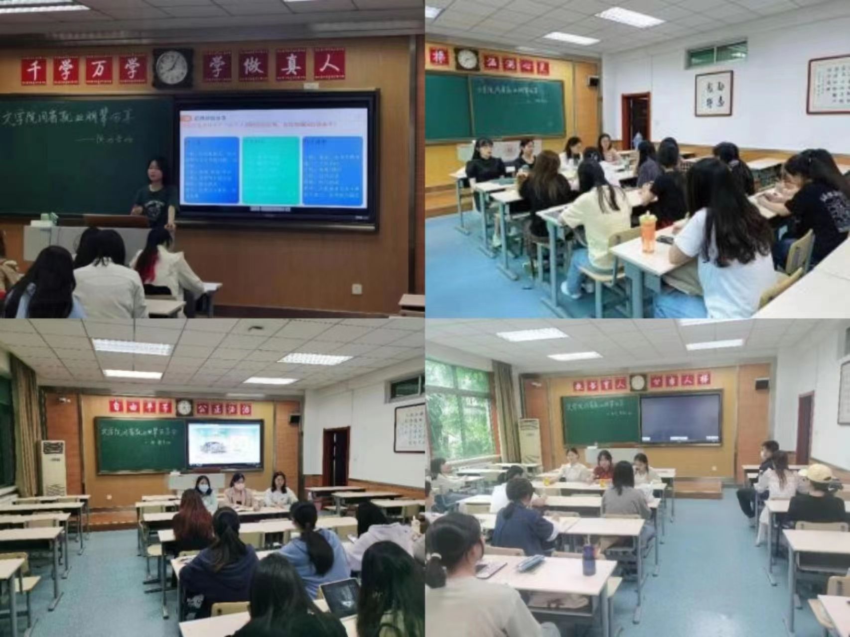 交流会上,优秀的应届毕业生们畅谈实习就业经历,倾囊相授关于实习就业成长经验,2020级、2021级、2022级各年级员工主动参与,虚心请教个人困惑,大家各抒己见,畅所欲言。各位分享人结合自身经历,对各位学弟学妹提出了发自肺腑的建议:一是认真备课,充分发挥自身主观能动性,积极关注就业情况,适时与他人沟通交流;二是精心设计,制作简历时要清晰精炼,突出重点和个人优势,在面试前要做好充分准备,熟悉好具体流程,以便在面试环节做到收放自如、灵活应对;三是乐观自信,在求职过程中要放平心态,敢于尝试、保持自信,以积极向上的心态迎接考验;四是珍惜机会,在实习期间珍惜讲课机会和与各位优秀教师交流的机会,重视教学知识与学科知识的积累,及时记录反思,总结经验。