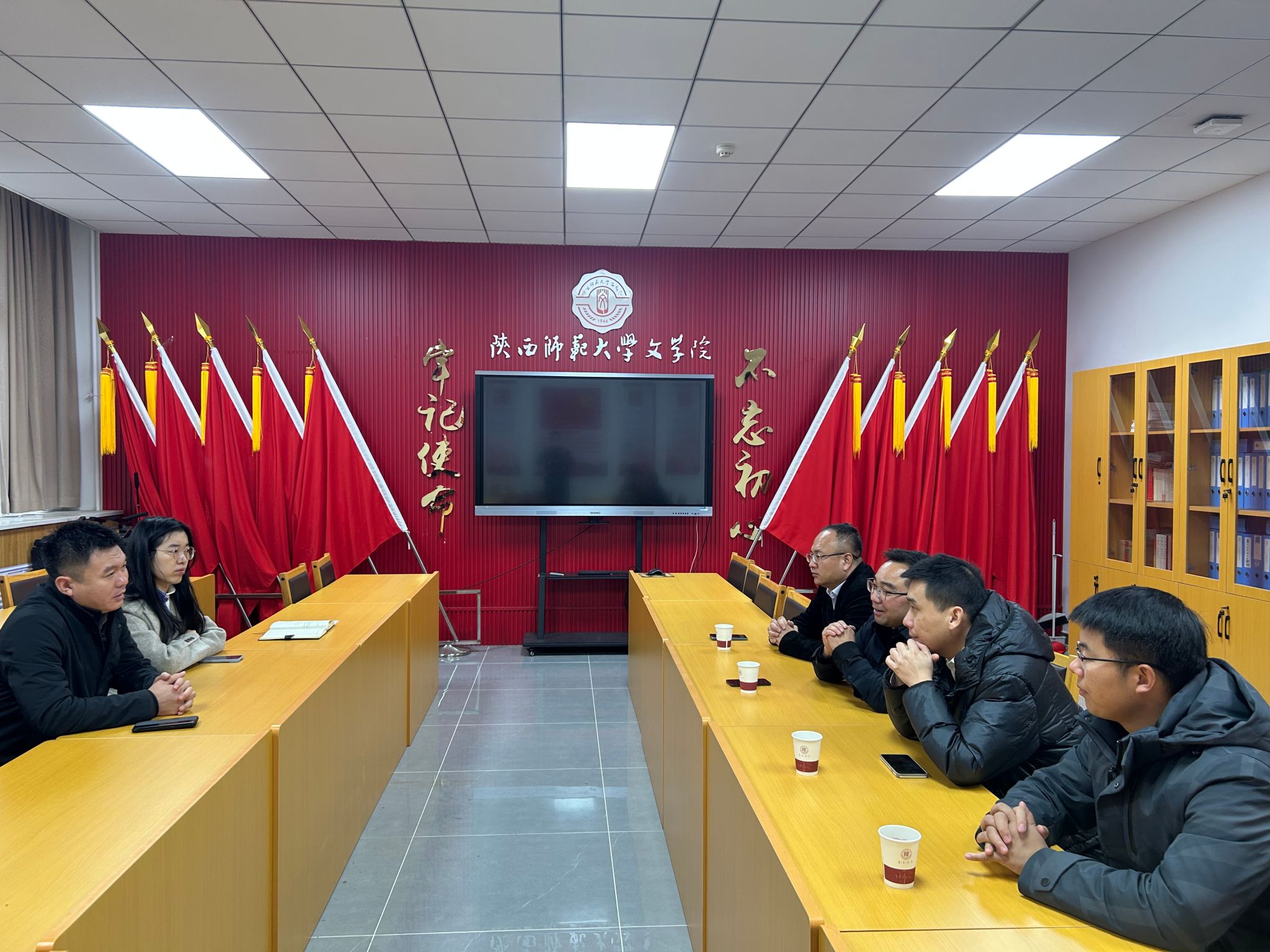 (通讯员:黄博阳)12月3日,咸阳高新第一公司董事长潘祥波、咸阳市高新梦桃公司董事长李益民、咸阳高新社会事务管理中心范超、咸阳高新第一公司董事长助理赵建一行来到公司,就招聘毕业生相关事宜展开深入交流与洽谈。公司党委副书记李钊、本科生辅导员胡雪梅、研究生辅导员黄博阳参加交流会。