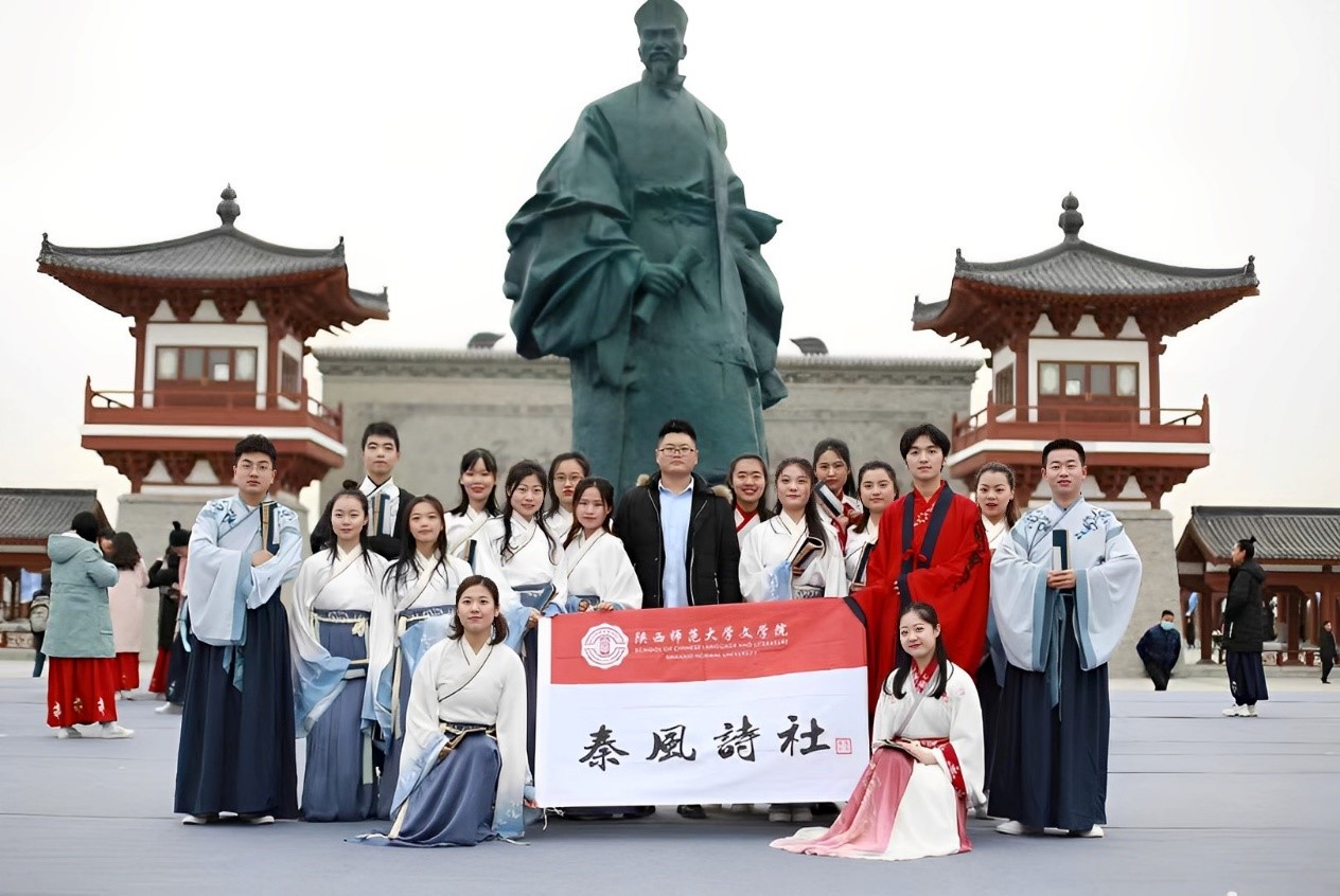 秦风诗社成立于2012年,以“体会诗词之美,推广传统文化”为宗旨,坚守校园文化阵地,传承吟诵艺术气质。在校内,诗社每周定期在长安、雁塔校区展开吟诵教学,定期参加每年的迎新晚会以及中华好诗词竞赛展演。在校外,2018年,诗社成员在共青团中央的号召下开展以“吟诵促推普,传统入新言”为主题的社会实践活动,助力推普脱贫攻坚战;2020年,诗社作为陕西省高校员工代表受邀参加“纪念张载诞辰1000周年—横渠书院开幕仪式”。先后获评2017-2018年bv伟德中国官方网站“共青团员先锋岗”、bv伟德中国官方网站十佳社团、全国优秀老员工国学社团等荣誉称号,成为bv伟德对外一张别具特色的名片。