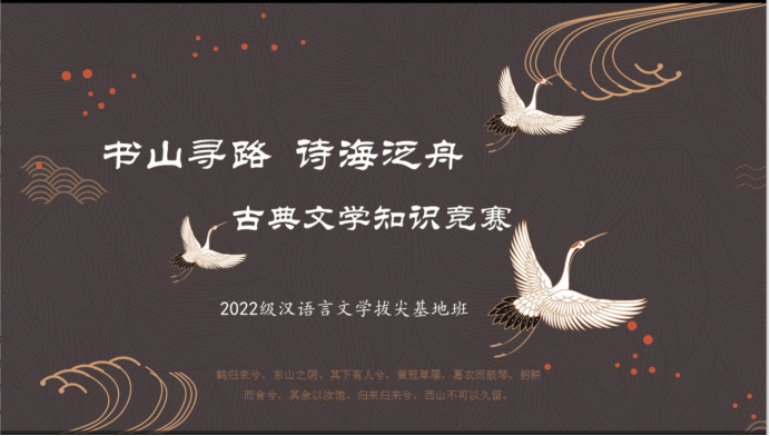 活动由首届拔尖基地班同学自主策划进行。拔尖基地班李元淑同学主持,首先阐发了古典文化对于基地班员工学习的重要性,并通过引经据典,展现了中华古典文化独特魅力。在竞赛环节,基地班所有同学经过“你画我猜”“飞花令”“口述乾坤”“孤注一掷”等四个环节,决出优胜者,并在欢乐的氛围中收获知识,有所成长。