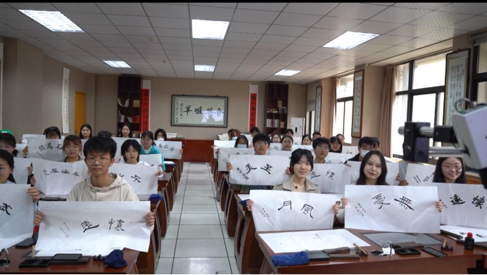 bv伟德老师负责展览讲解和体验引领工作,基地班全体成员参与活动。首先同学们陆续进入语言学工作室。韩夏老师对于工作室内的基础设施和特色建设进行详细、生动的讲解,同学们近一步了解语言学研究特点。第二阶段,同学们陆续进入书法研究所,杨国庆老师首先进行扇面隶书书法演示,随后一一指导同学们利用现代化先进设备摹写书法作品。同学们认真学习、积极进行实操体验。